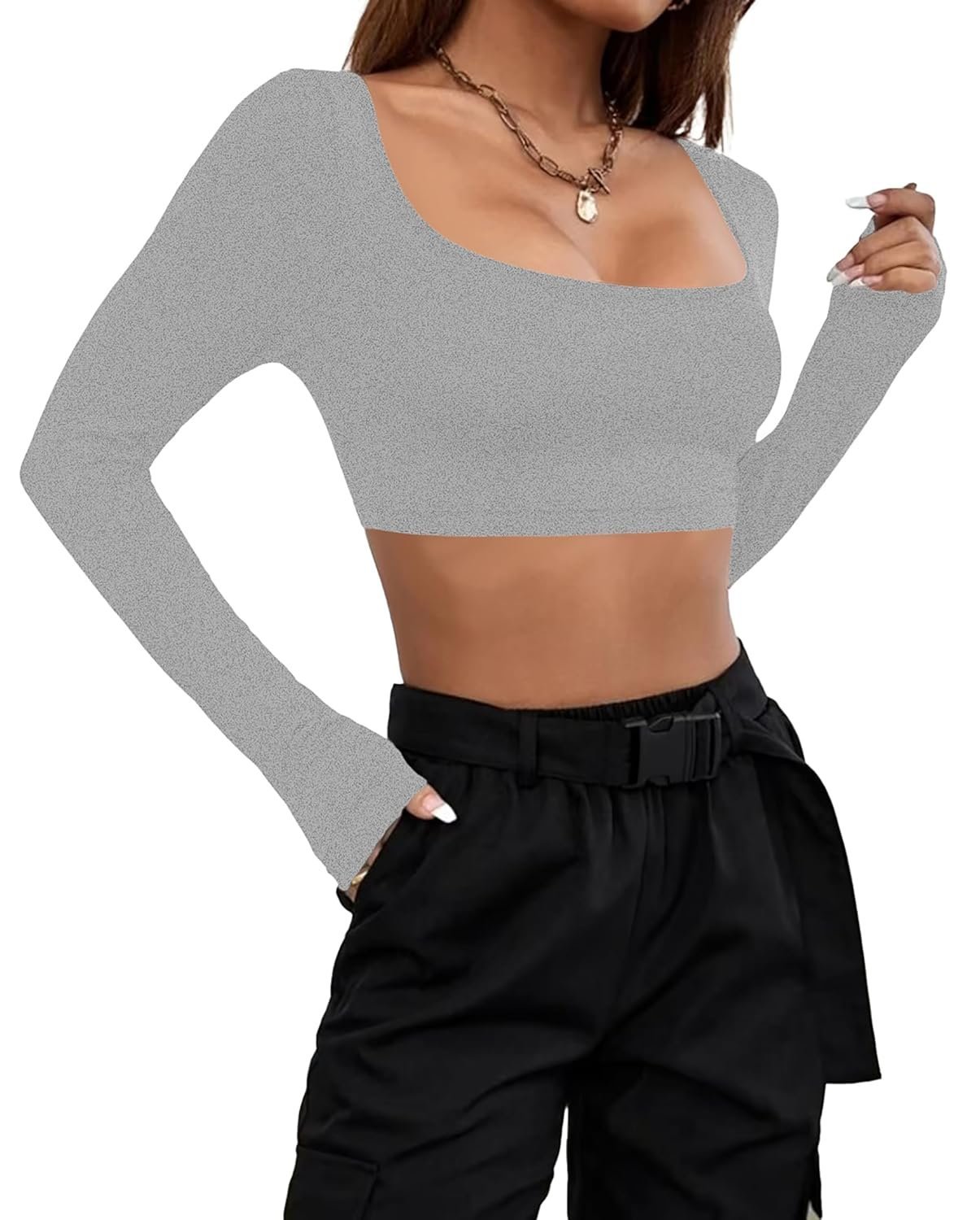 Women’s Cotton Stretchable Round Neck Full Sleeve | Western Casual Wear Crop Top for Women L553